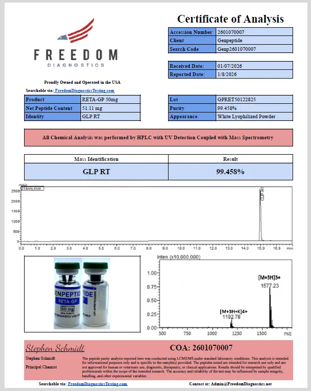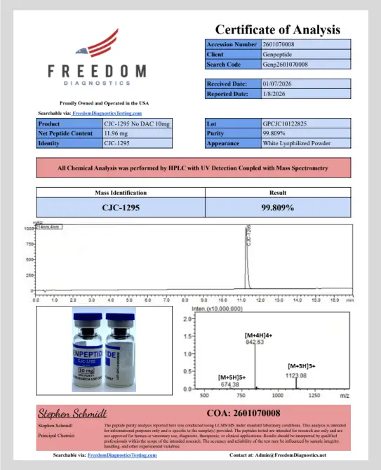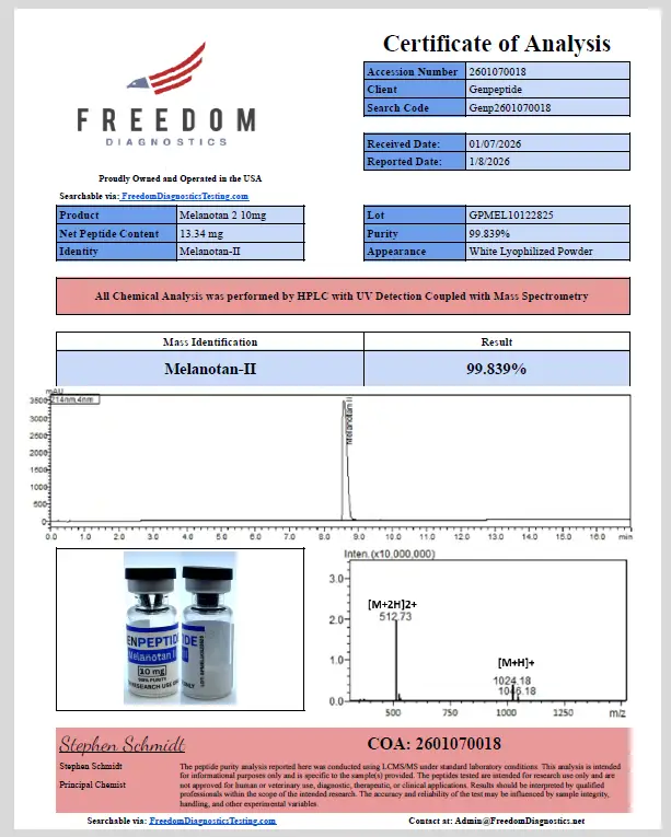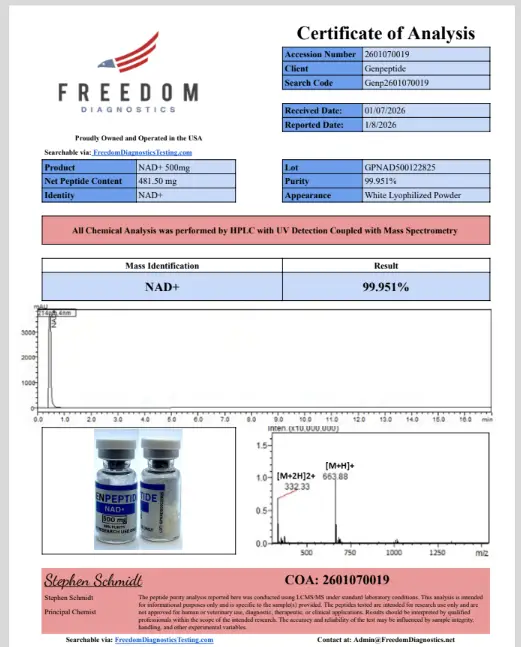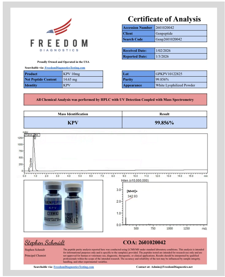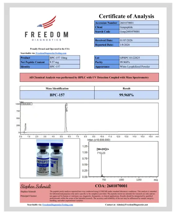 Additionally, a COA provides batch-specific information, enabling scientists to track and compare results consistently across different studies. Without this verification, the risk of flawed or unreliable research increases, as contaminants, inconsistencies, or inaccurate product claims can compromise findings. For this reason, at Genpeptide, we prioritize full transparency.
